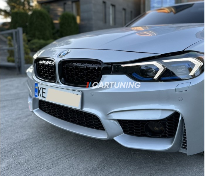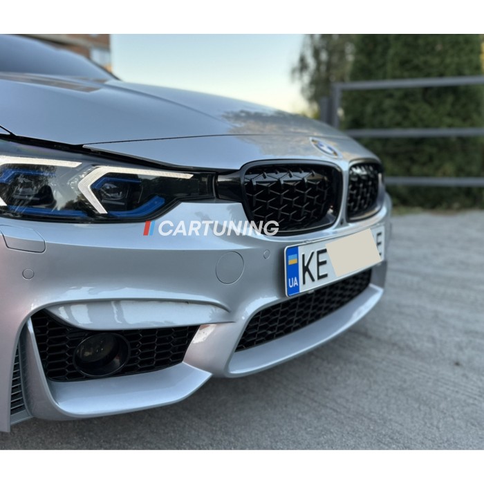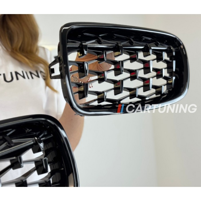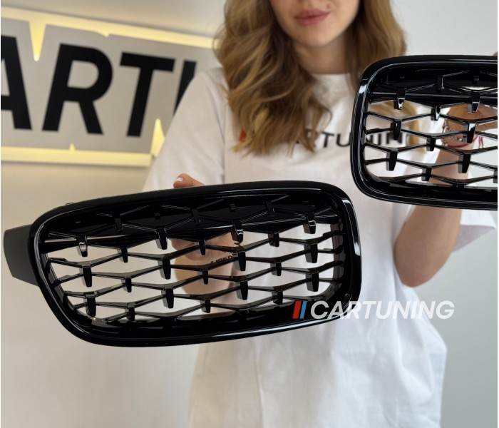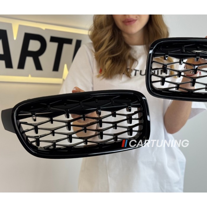 Решетка радиатора, ноздри на БМВ F30 Diamond (черная)