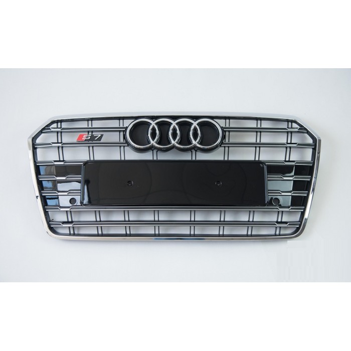 Решітка радіатора Ауді A7 G4 S7, хром рамка + хром вставки (2014-2017)